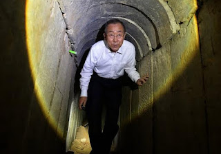 Actually, Secretary General Ban-Ki Moon is pictured here, taking a leisurely tour of one of Hamas's luxury, terror attack tunnels!
